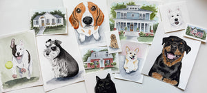 Mini paintings are perfect for gifting or if you're looking for fill a small space (like a bookshelf or side table). I offer house portraits and pet portraits in this tiny size. Your painting will come in an acrylic frame so it's ready to display as soon as it arrives!