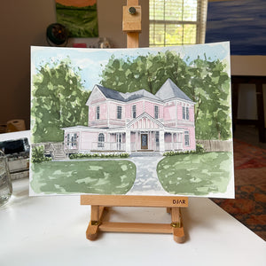 Mini paintings are perfect for gifting or if you're looking for fill a small space (like a bookshelf or side table). I offer house portraits and pet portraits in this tiny size. Your painting will come in an acrylic frame so it's ready to display as soon as it arrives!